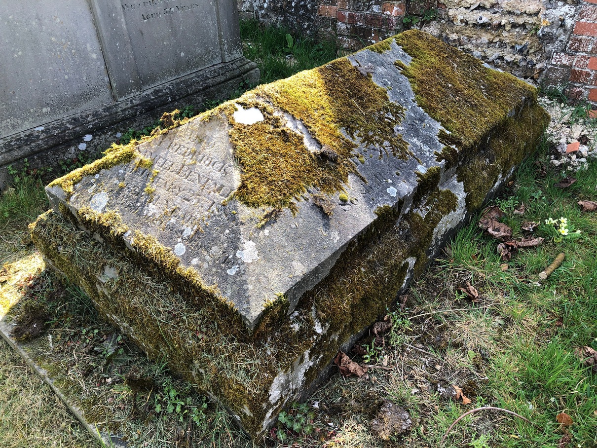 | West slope of roof, "fell asleep in Jesus" / Louisa Matilda Bentall August 9th 1863. Aged 18 / Ellen Ann Bentall February 12th 1867, aged 24/ Henry Bentall September 17th 1871 aged 21/ "so shall they ever be with the Lord" East slope of roof, Ann the beloved wife of Samuel Bentall who died January 29th 1880 aged 70/ "he giveth his beloved sleep"/ Samuel Bentall entered in torest December 9th 1885 aged 69/ Edwin George Bentall died May 9th 1914// North slope of roof, also Frederick Samuel Bentall died January 25th 1885/ aged 41 years/ "until the day breaks and the shadows flee away" entrance stone to vault entrance to Mr Bentlalls Vault | |