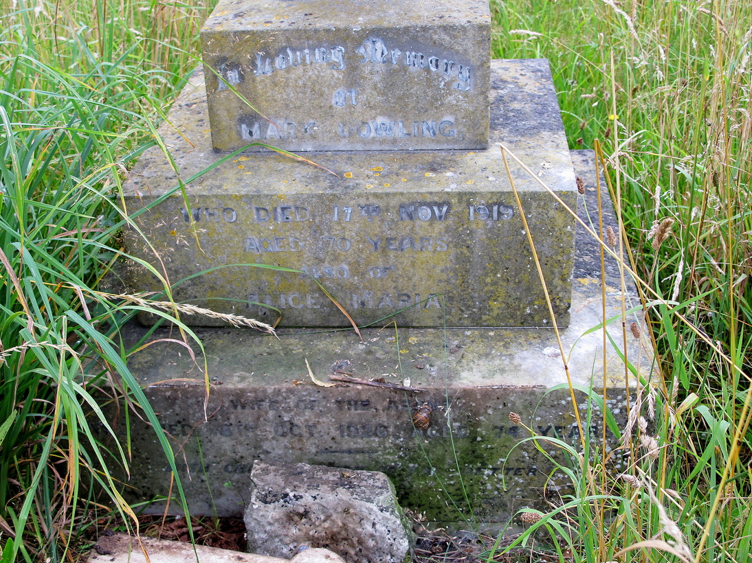 | On top and middle step: In Loving Memory of/ Mark Dowling/ who died 17th. Nov. 1919/ aged 70 years./ On lower step: Also of/ Alice Maria/ wife of the above/ who died 18th. Oct. 1926/ aged 74 years./ "With Christ which is far better." | |