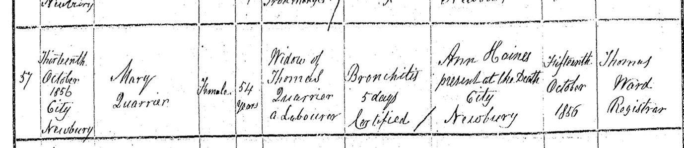 Death certificate for Mary Quarrier