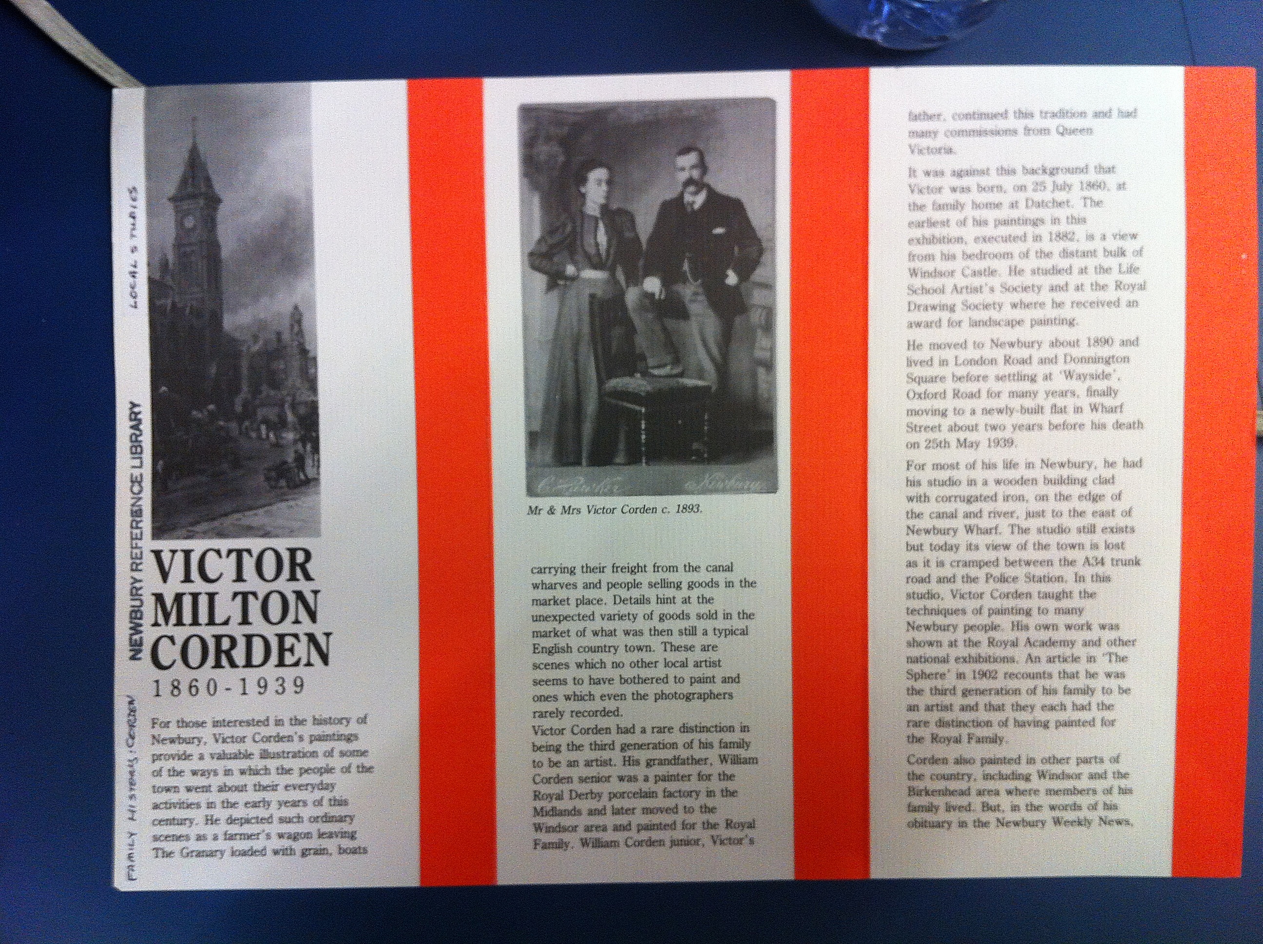 His son Victor Milton Corden (c. 1860-1939) painter of landscape and military subjects, who was baptized on 28 July 1860 at Datchet, Buckinghamshire, when his mother’s name was recorded as Elizabeth, also worked for Queen Victoria.